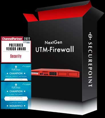 UTM-Firewalls von Securepoint schützen Ihre Netzwerke zuverlässig vor Angriffen von Außen. Zudem ermöglichen sie ein sicheres Surfen und Arbeiten durch intelligente Filter. Außerdem hält die mehrfach ausgezeichnete E-Mail-Security Ihre E-Mail-Postfächer mit bis zu vier leistungsfähigen Scan-Engines sauber.